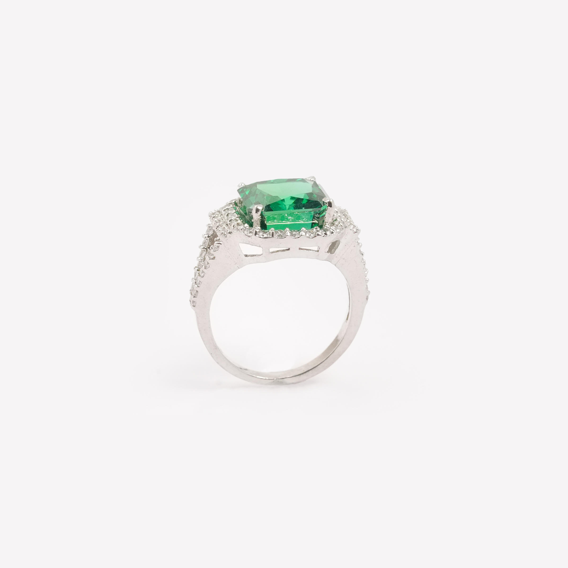 - Center Stone: Deep Emerald Hue