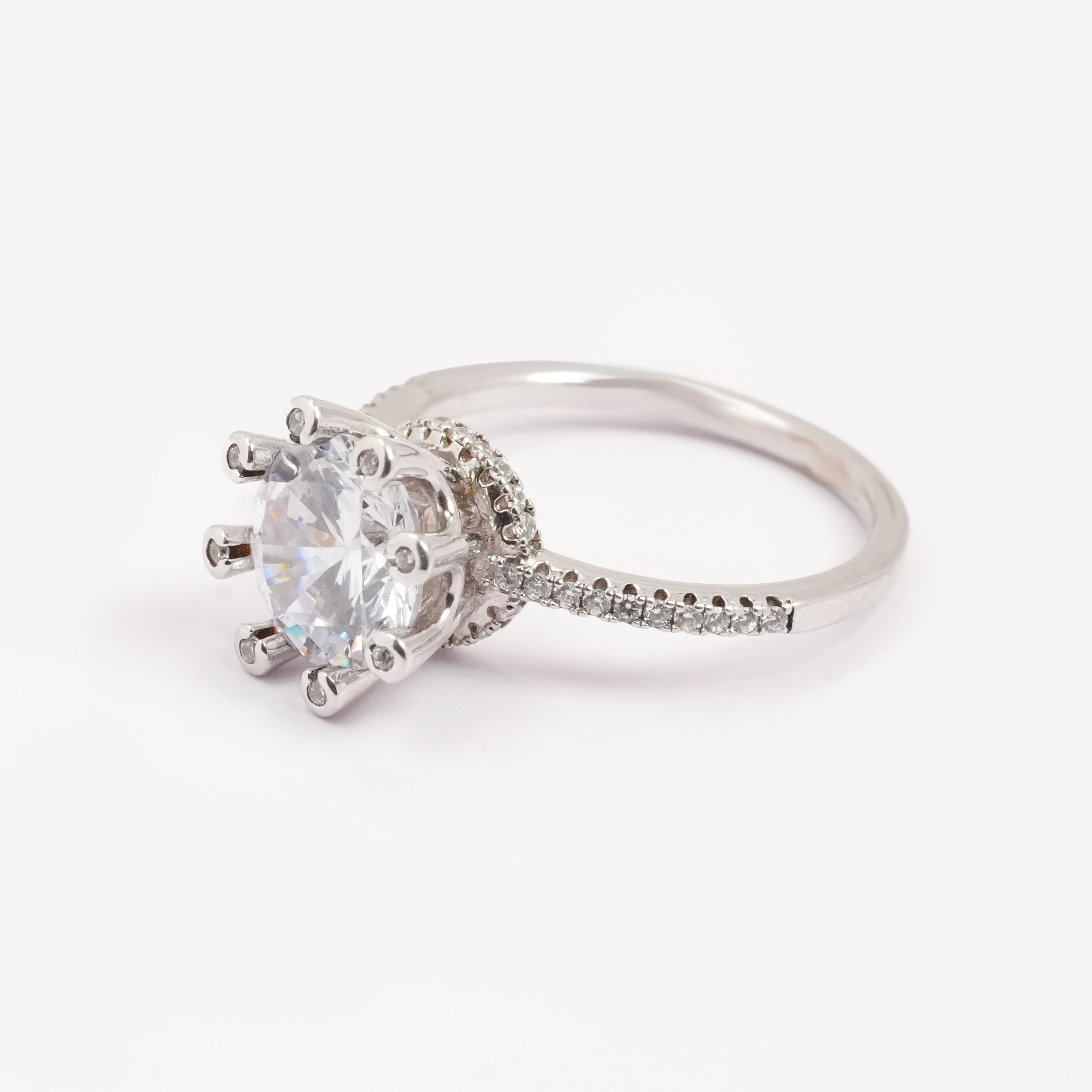 The Celeste Halo Silver Ring is a masterclass in brilliance. Encircled by a ring of micro-crystals, the central stone is elevated to new heights of shimmer, ensuring that your hand catches the eye in any light.