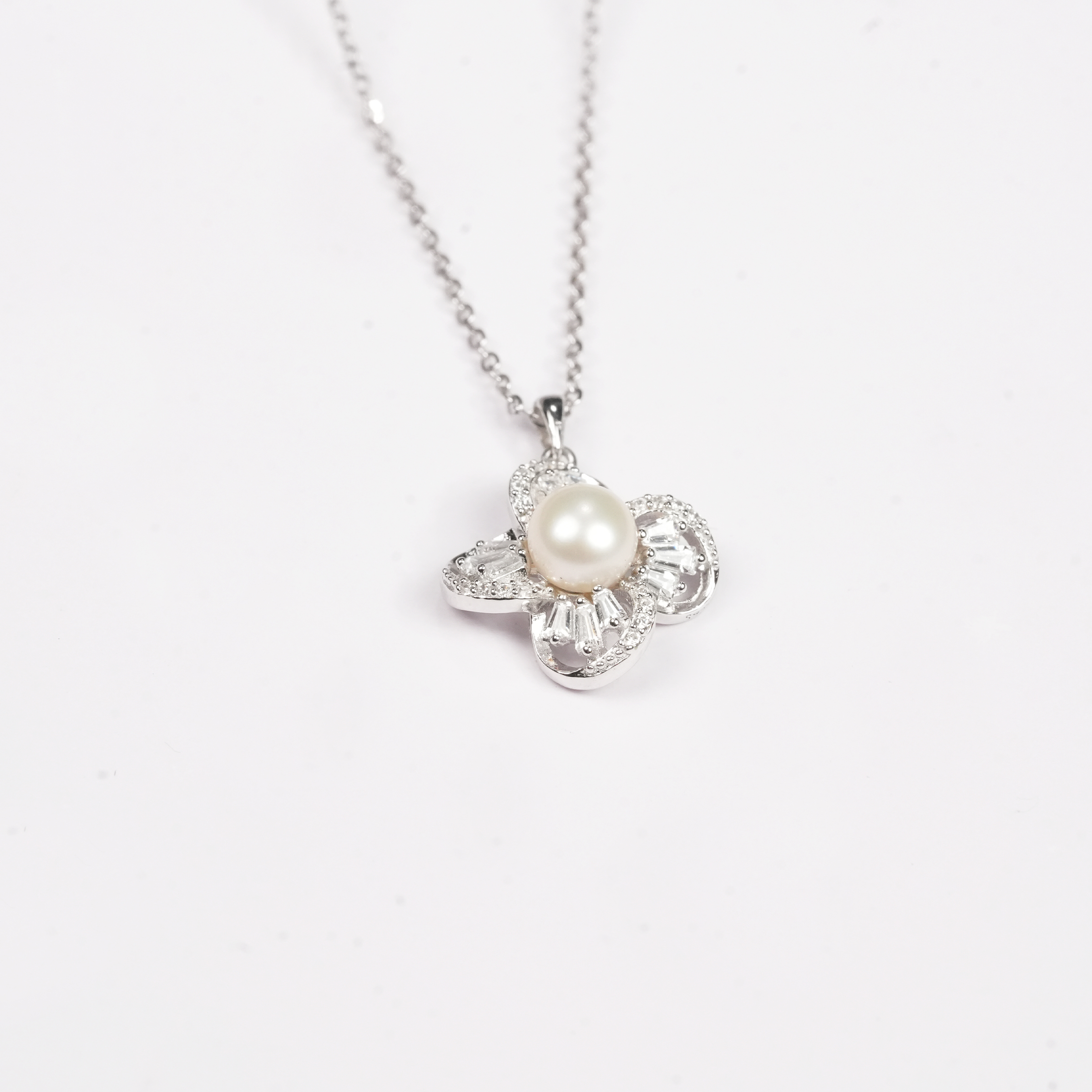 The Fiora Silver Necklace offers a modern take on floral designs with its sharp lines and brilliant stone placement. It’s a bold yet elegant piece that brings a contemporary edge to a classic botanical theme.