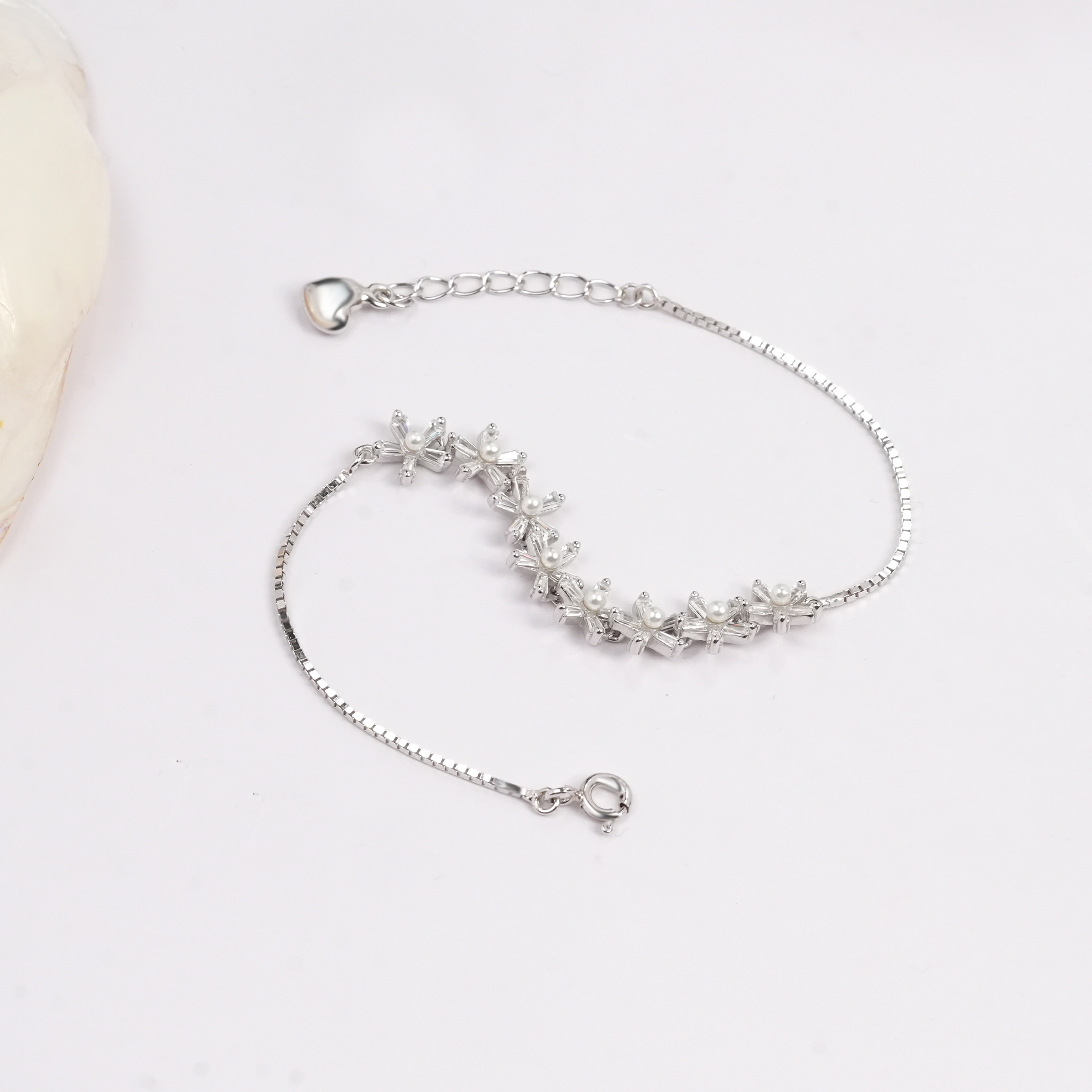 The Floral Crystal Silver Bracelet captures the delicate beauty of a blooming garden. Each stone is carefully arranged in a floral motif, creating a feminine and whimsical look that adds a romantic touch to any outfit.