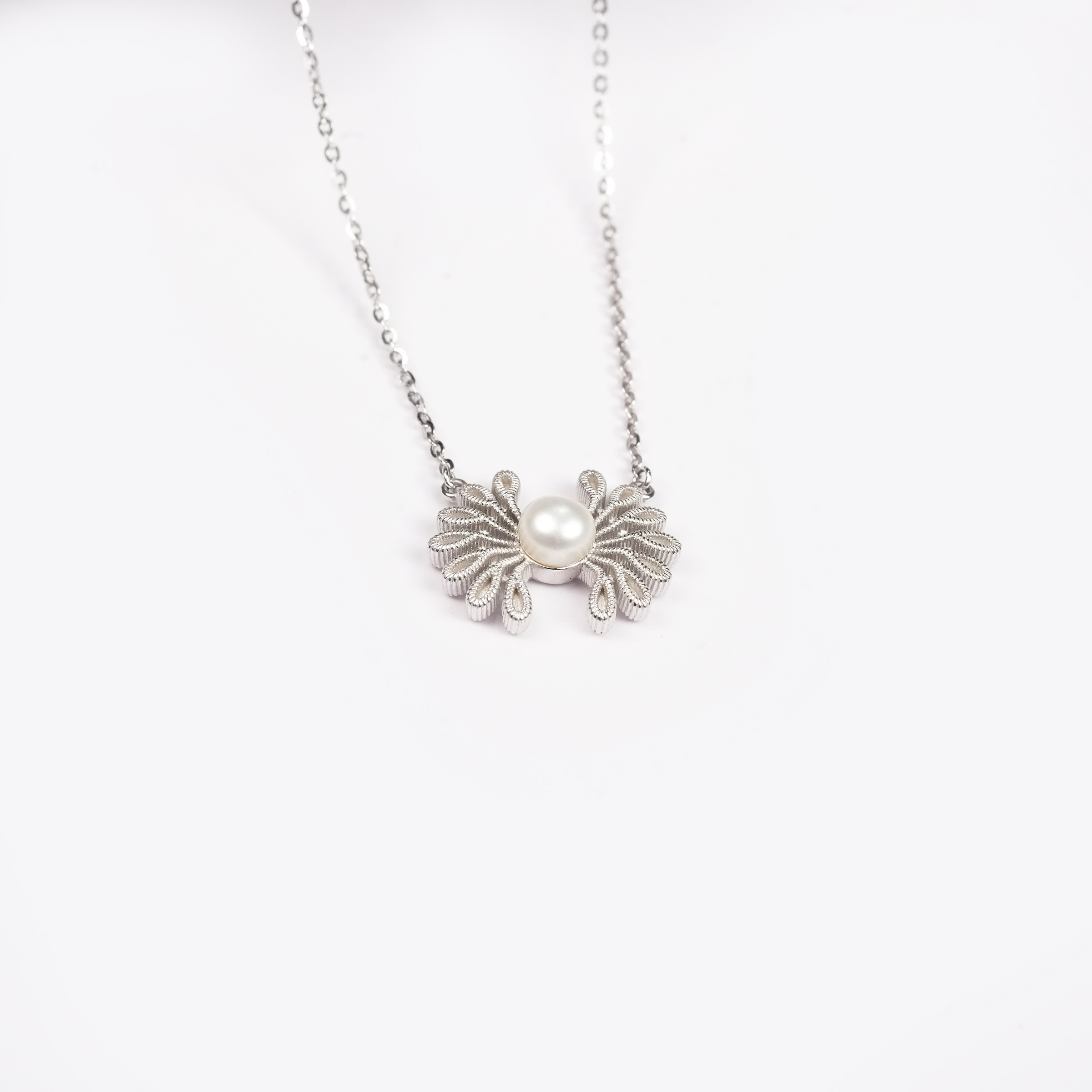 Simpler but no less stunning, the Floral Silver Necklace features a clean, petal-inspired design. It’s an ideal accessory for those who appreciate the subtle beauty of nature captured in shimmering metalwork.