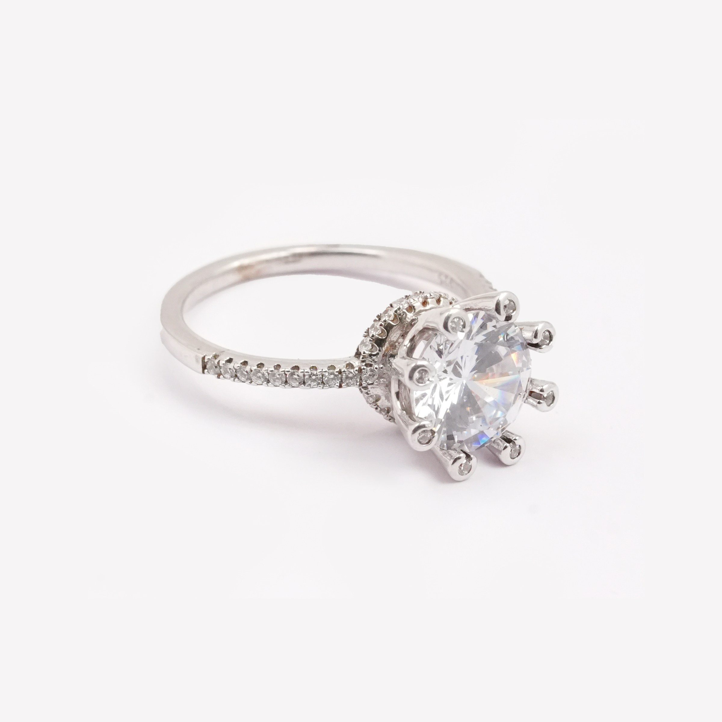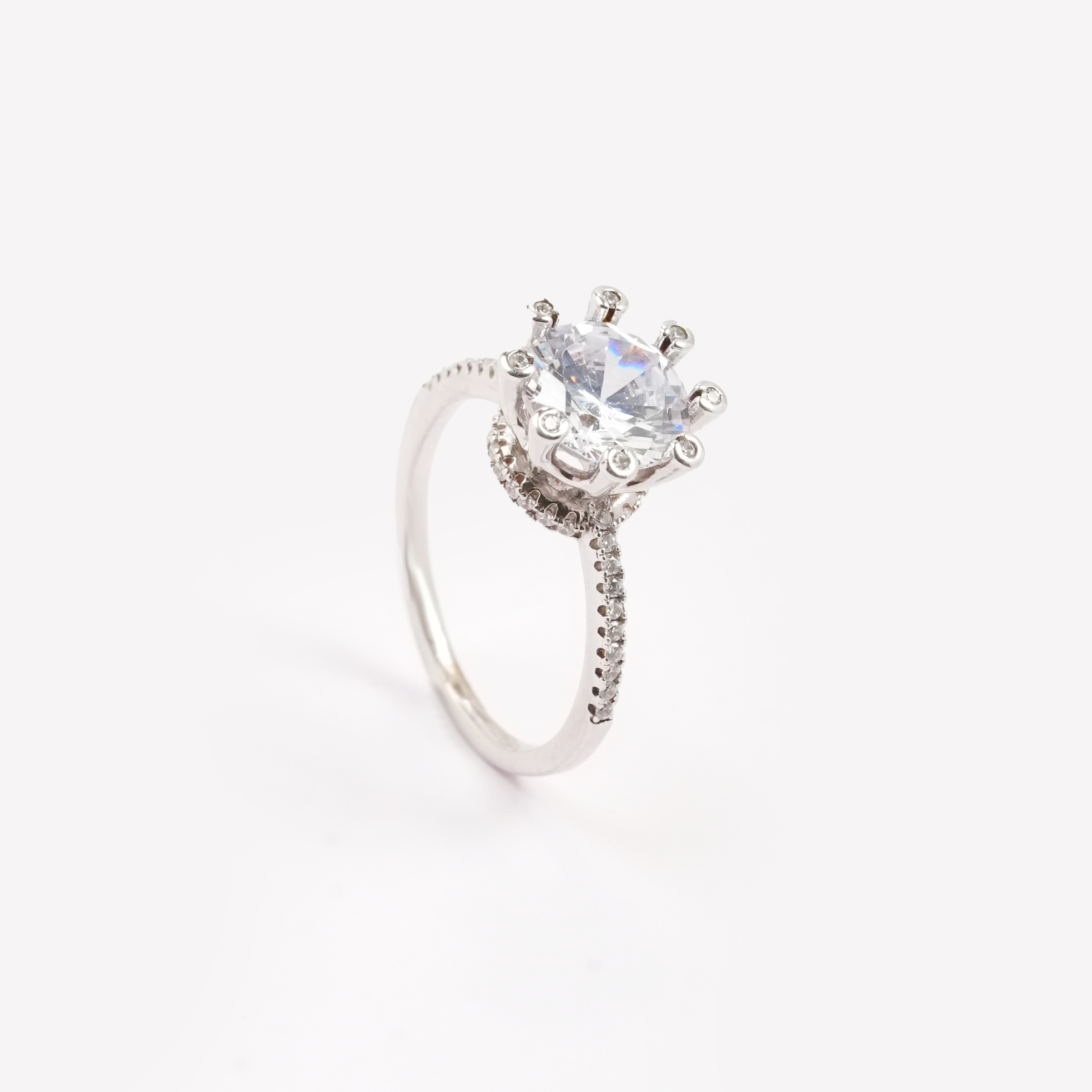 The Celeste Halo Silver Ring is a masterclass in brilliance. Encircled by a ring of micro-crystals, the central stone is elevated to new heights of shimmer, ensuring that your hand catches the eye in any light.