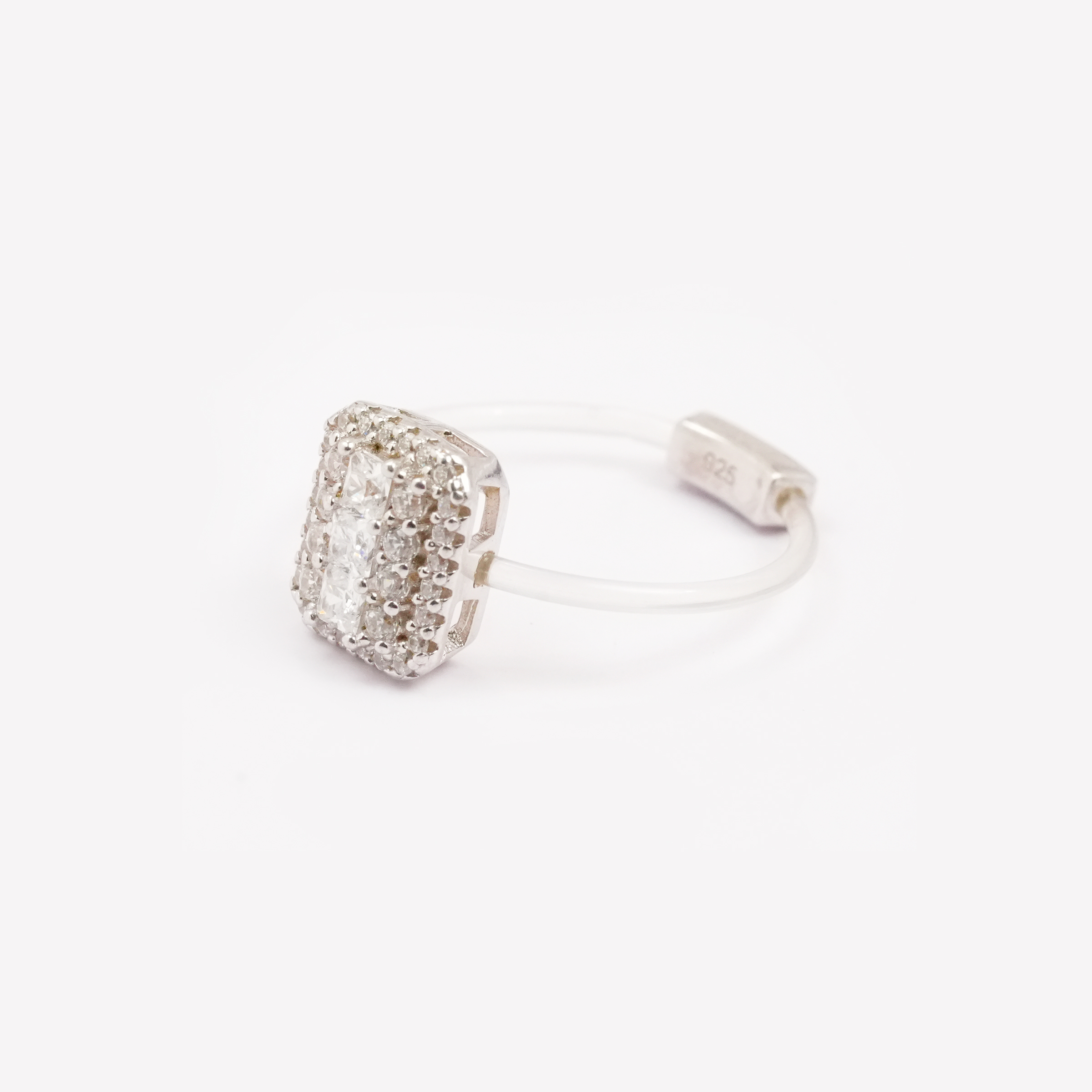 The Celeste Halo Silver Ring is a masterclass in brilliance. Encircled by a ring of micro-crystals, the central stone is elevated to new heights of shimmer, ensuring that your hand catches the eye in any light.