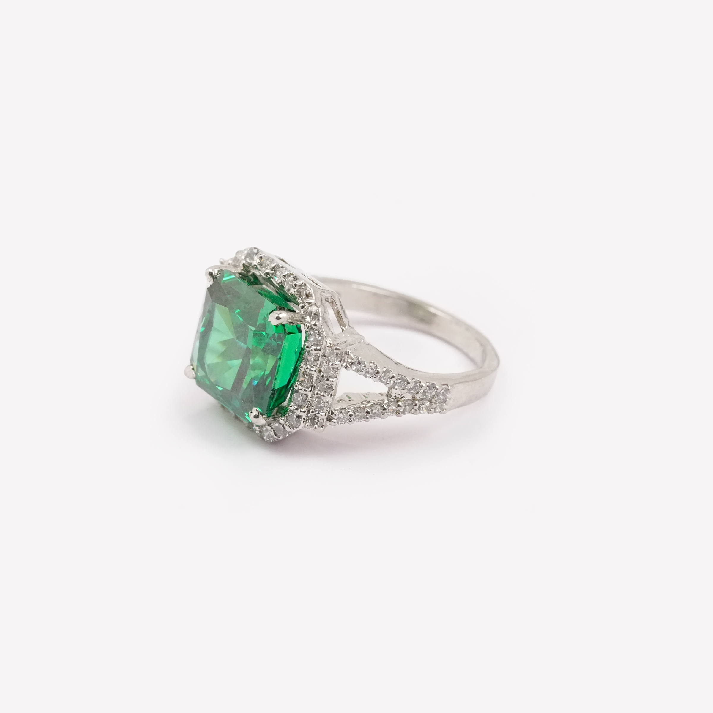- Center Stone: Deep Emerald Hue